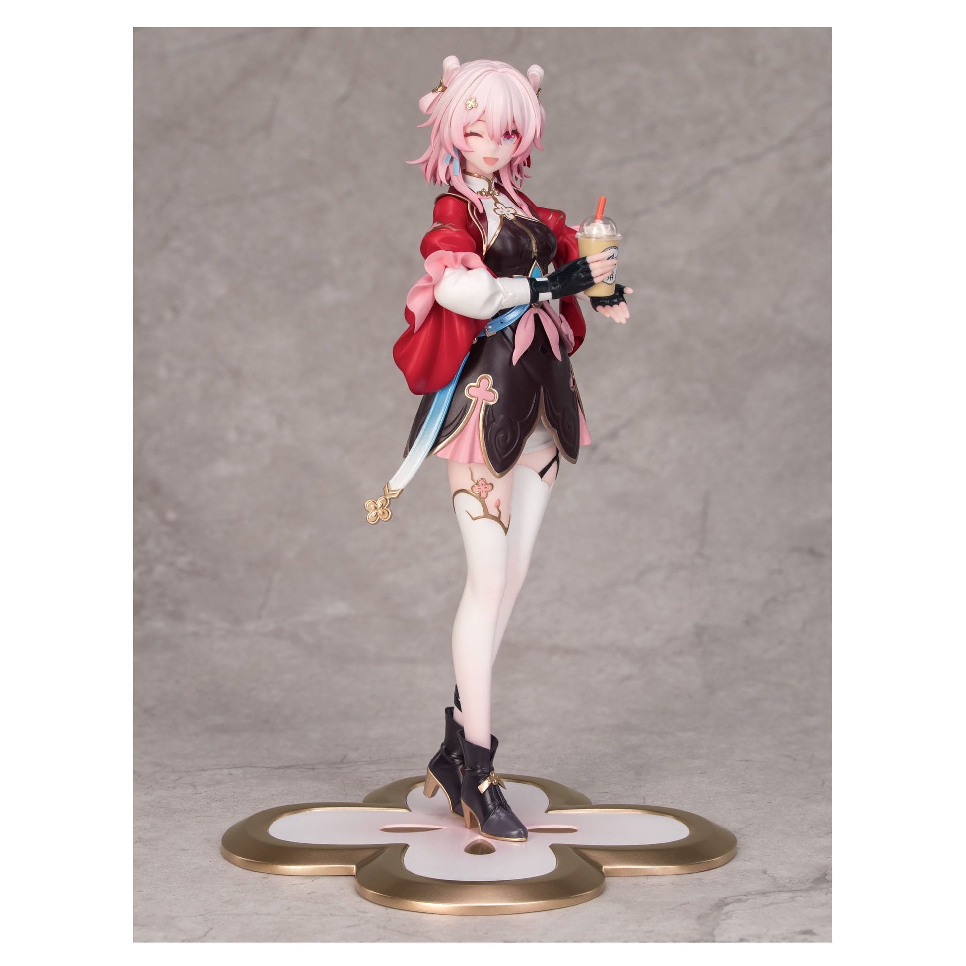 This collectible captures March 7th's lively tea-serving pose taking from her skill animation. She bends one knee slightly, embodying the swift and daring energy of the Hunt Path. The figure comes with interchangeable faceplates featuring her signature wink and radiant smile! The ribbons cascade around her celestial attire, and lift naturally with the wind - every detail thrums with the cosmic energy of the Trailblaze journey.