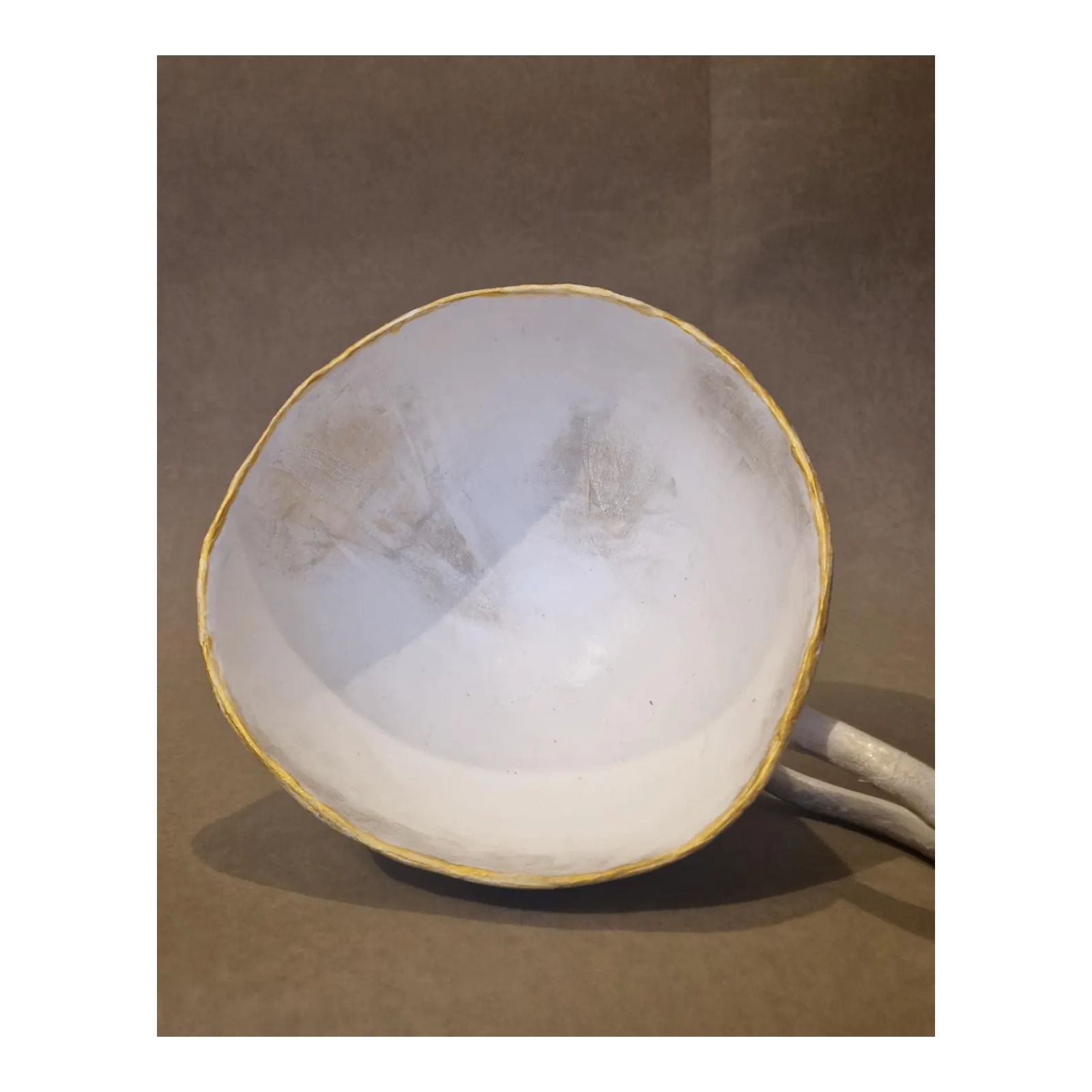 It is made of papier-mâché and coated with crackle-effect varnish, which gives it elegance and a touch of vintage charm.