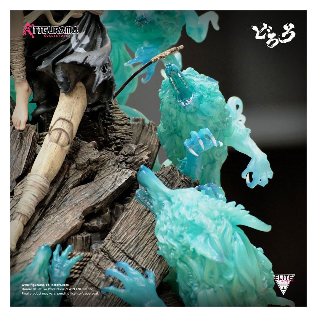 Dororo & Hyakkimaru Elite Fandom Statue debuts as the world's first polystone collectible inspired by the 2019 anime adaptation of Osamu Tezuka's legendary manga. As a special tribute to the story, Hyakkimaru's prosthetic forearms are functionally crafted to slide off like they do in the anime, revealing the diecast metal blades mounted beneath. An alternative Hyakkimaru portrait complements this function, portraying him holding the removed prosthetic arms with his teeth, as he bares his forearm blades or wields his interchangeable katana against the spirits of five predatory Kyubi.
