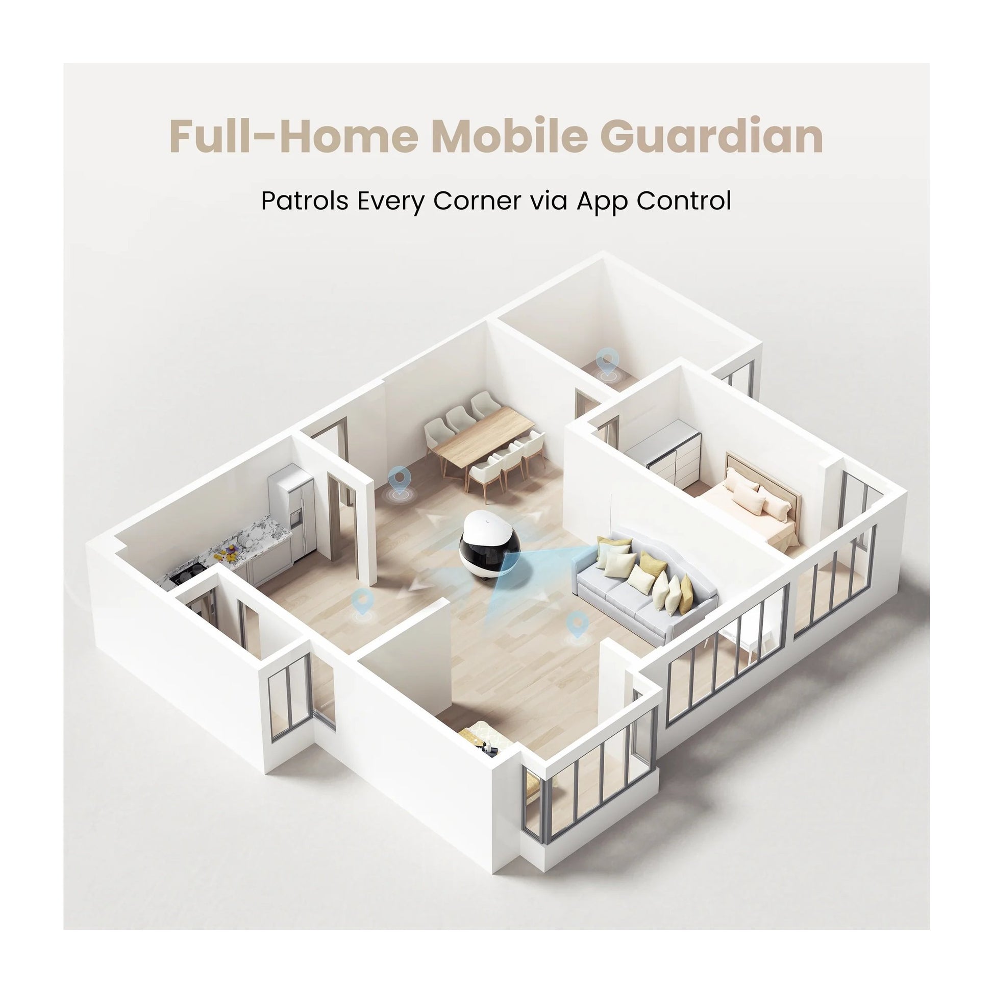 Moves freely around rooms and under furniture